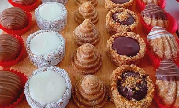 Ako ste u potrazi za brzim i jednostavnim načinom pripreme više vrsta kolača, ovaj recept je pravi izbor za vas. Kombinacija mljevenog keksa, mljevenih oraha, džema od kajsija i nekoliko osnovnih sastojaka kao što su čokolada, kokosovo brašno i lješnjaci stvara bogatstvo okusa i tekstura. Svaka od ovih poslastica nudi nešto posebno – od hrskavih korpica, preko sočnih valjaka, pa sve do bombica koje se tope u ustima.