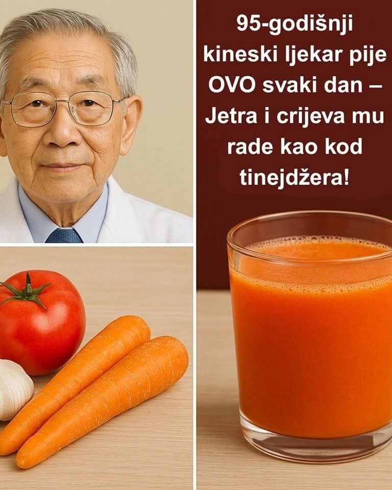 Da li ste se ikada zapitali kako neki ljudi uspijevaju održati svoje zdravlje i vitalnost čak i u kasnijim godinama? Postoji stara izreka: “Jednostavne navike čine snažno tijelo.” I to je potpuno tačno! Kineski doktor od 95 godina otkrio je tajnu svog mladalačkog jetre i zdravih crijeva – jednostavan, prirodan napitak napravljen od šargarepe i paradajza.