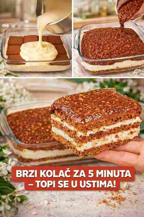 Ovaj kolač je brz, jednostavan i savršen za trenutke kada želite nešto slatko bez puno truda. Probajte ga i uživajte u svakom zalogaju koji se topi u ustima!