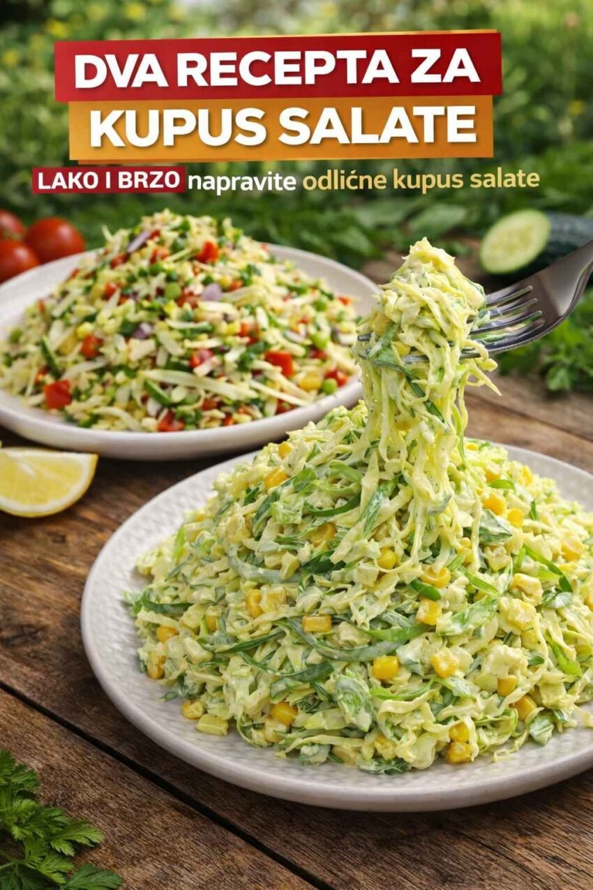 Kupus salata je jedan od najjednostavnijih i najzdravijih dodataka svakom obroku. Osim što se brzo priprema, bogata je vitaminima i osvježavajućeg je okusa. Donosimo vam dva jednostavna recepta koja možete napraviti za samo nekoliko minuta, a koji će oduševiti cijelu porodicu.
