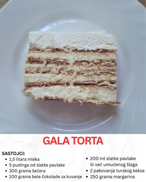 Priprema torte može biti pravo umetničko iskustvo, a kada govorimo o Gala torti, govorimo o pravom spoju tradicije i moderne poslastičarske magije. Ova torta nije samo obična slastica; ona je harmonija kremastih filova, nežnih puding krema, bogatstva bele čokolade i teksture turskog keksa koji zajedno stvaraju neodoljivu kompoziciju.