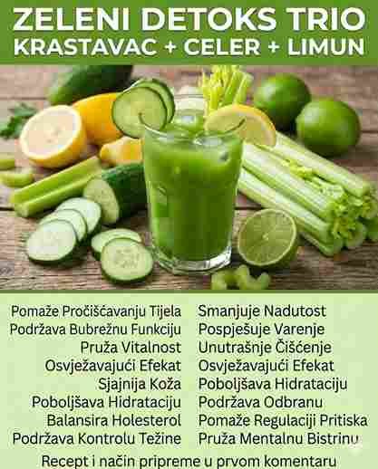 U moru složenih dijeta i skupih suplemenata, ponekad zaboravimo koliko jednostavni sastojci mogu biti moćni. Kombinacija krastavca, celera i limuna poznata je kao „zeleni trio“ koji tijelu pruža osvježenje, hidrataciju i laganu nutritivnu podršku. Ovaj napitak je lagan, prirodan i idealan za svakodnevnu upotrebu, posebno ujutro ili tokom toplih dana.