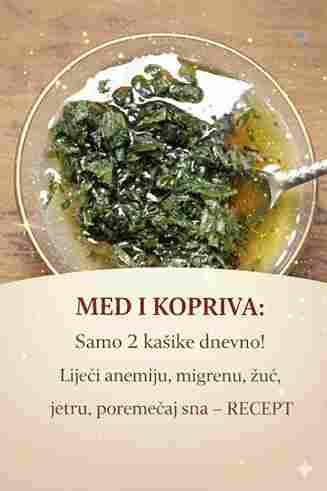 Koprivu sameljite u fini prah (ako već nije mljevena). Umiješajte je u med dok ne dobijete homogenu smjesu. Čuvajte u staklenoj tegli, na tamnom i hladnom mjestu.