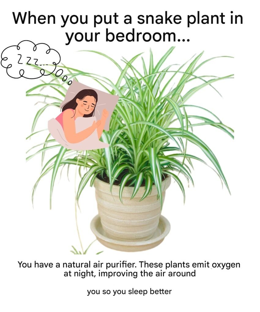 2️⃣ Oslobađanje kisika noću – Za razliku od mnogih biljaka, sanseverija i tokom noći proizvodi kisik, olakšavajući disanje.